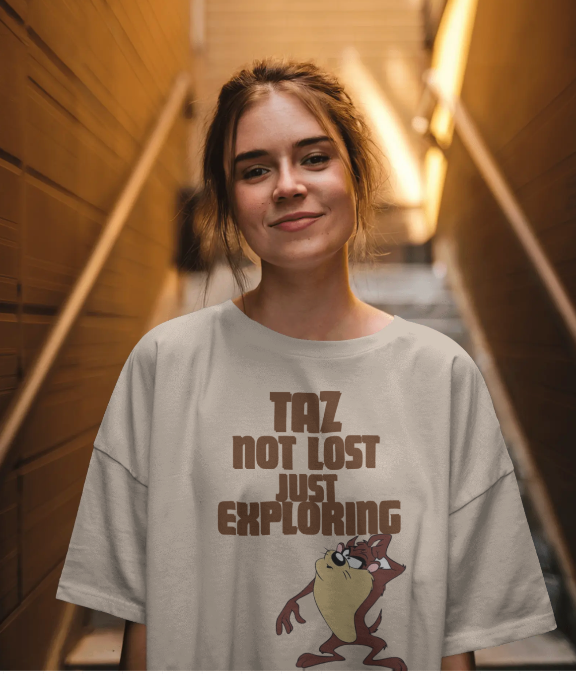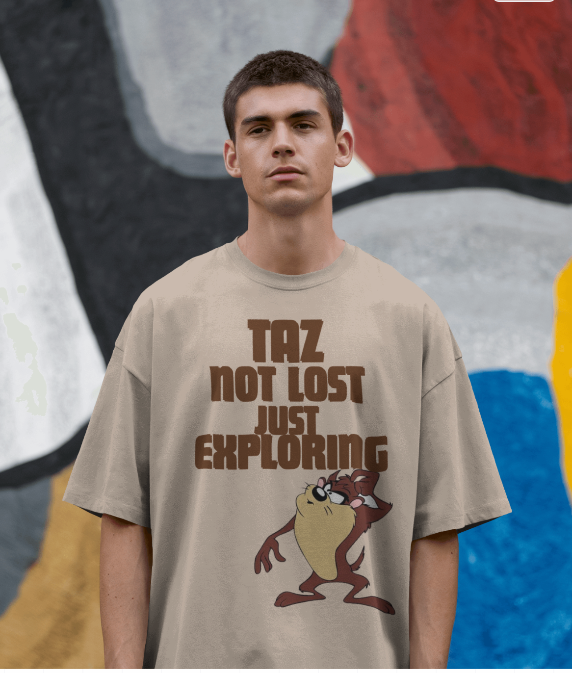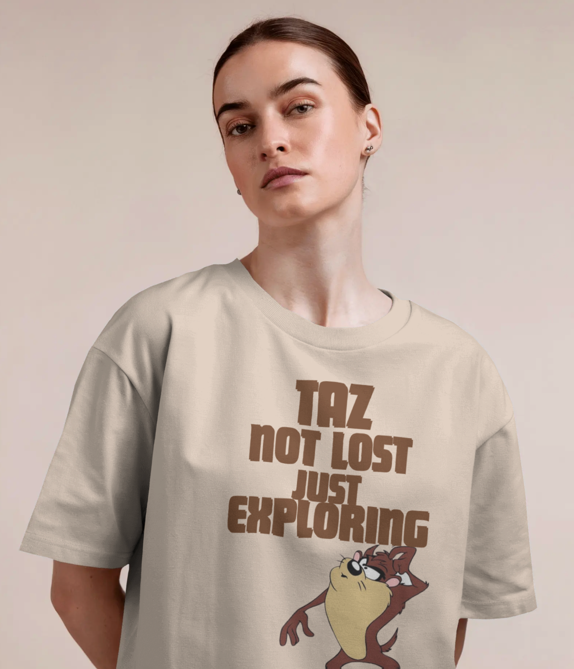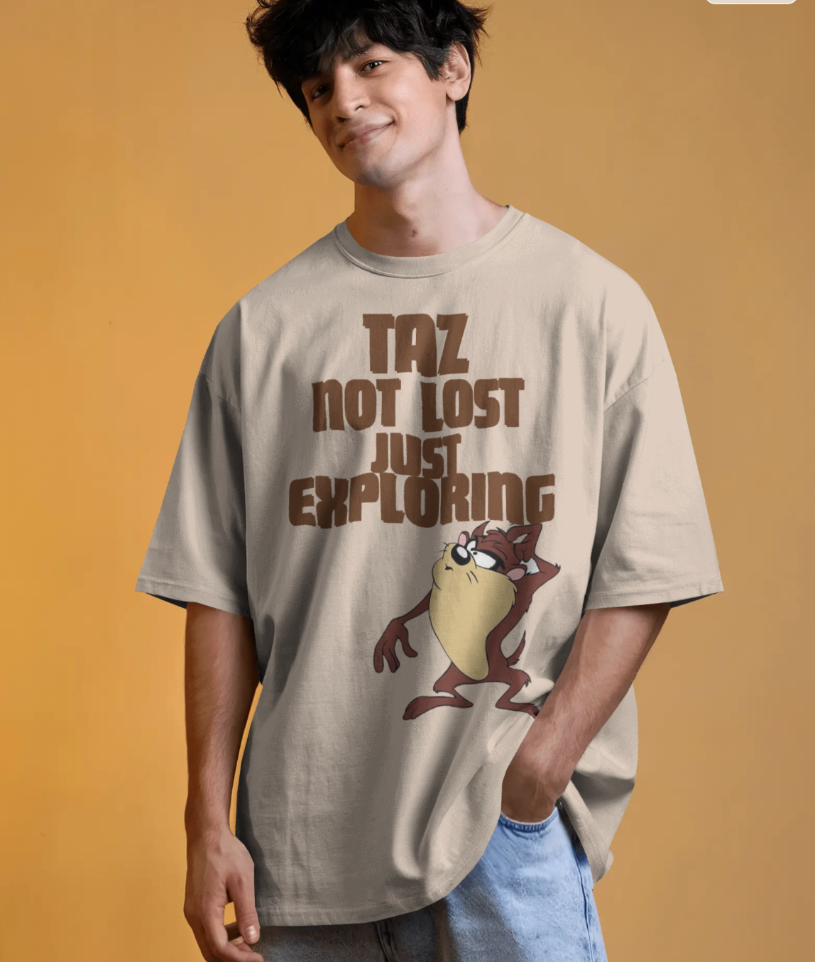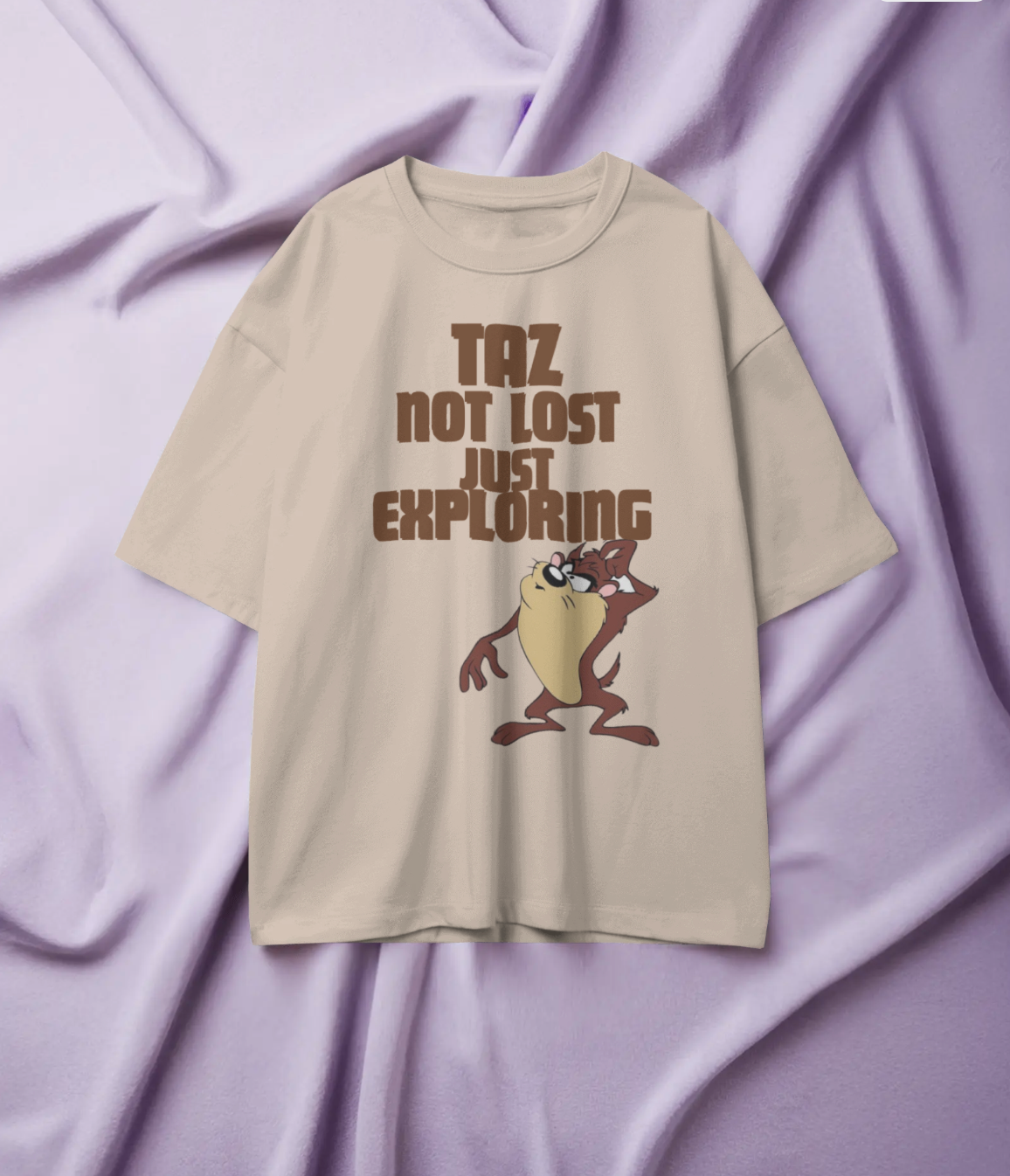 Hold onto your hats and buckle up for a wild ride with our "Tazplorer" oversized tee! Made from the comfiest cotton this side of Looneyville, this tee is as cozy as it is quirky. Front and center, the Tasmanian Devil himself, Taz, takes center stage, ready to unleash his whirlwind of chaos. But fear not! Beneath that tornado of fur lies a simple truth: "Taz not lost, just exploring." Because let's face it, if Taz can't find his way, who can? With its oversized fit, this tee offers more room than Taz's appetite for destruction, making it perfect for any adventure – whether you're chasing down your next meal or just binge-watching cartoons at home. So why blend in when you can stand out in style with our "Tazplorer" oversized tee? Let Taz be your guide as you navigate life's craziness, one whirlwind adventure at a time.